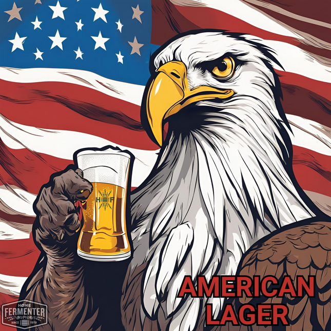 Elevate your homebrewing experience with our American Lager extract with grains recipe kit, carefully crafted to bring the crisp, clean taste of a classic American Lager straight to your glass. Perfect for those who appreciate a refreshing and sessionable brew, this kit is designed to deliver a smooth and well-balanced lager that's ideal for any occasion. Our premium kit includes high-quality malt extract, specialty grains for added depth of flavor and selected hops for a gentle bitterness and aromatics. Whether you're a seasoned brewer or new to the world of homebrewing, our easy-to-follow instructions will guide you through the process, making it a seamless and enjoyable brewing journey. Crafted with precision and attention to detail, this American Lager recipe kit presents a versatile canvas for customization. From experimenting with different fermentation temperatures to exploring dry hopping techniques, the kit allows you to tailor the brew to your preferences and refine your brewing skills. Share your homemade brew with friends and family or savor it as a reward for your brewing prowess. Unleash your creativity and brew a taste of Americana with our American Lager extract with grains recipe kit. Cheers to craftsmanship and the joy of homebrewing! Our recipe kits include steeping muslin socks for grain and boiling hop additions. Yeast and priming sugar are not included in the kit and are optional add-on items. Makes 5 Gallons.  Estimated Beer Stats LME Option DME Option Original Gravity (OG) 1.054 1.050 Final Gravity (FG) 1.009 1.008 Approximate ABV 5.9% 5.5% Color (SRM) 6 5 Bitterness (IBUs) 21 22 Ingredient / Instruction Sheet