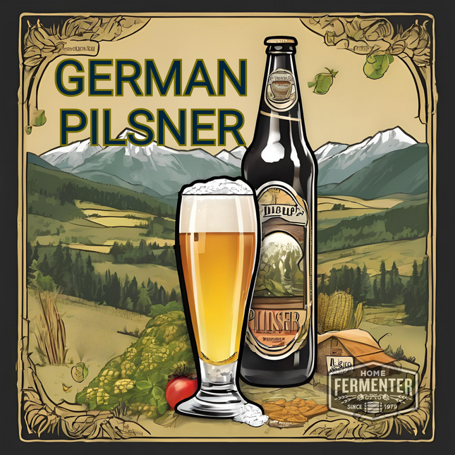 Discover the crisp, clean, and refreshing taste of a traditional German-style Pilsner with our extract recipe kit. Perfect for those who appreciate the time-honored brewing techniques of the Germans, this kit contains hand-picked ingredients to help you craft a premium-quality Pilsner right in your own kitchen. Pilsen light malt extract, specialty grains, and noble hops come together in perfect harmony to replicate the classic Pilsner profile. The result is a golden-hued beer with a balanced malt backbone and a distinctive hop bitterness, reminiscent of the iconic Bavarian brews. With easy-to-follow instructions included, brewing this German-style Pilsner at home is a breeze, making it an ideal choice for both beginners and experienced homebrewers alike. Impress your taste buds and those of your friends with a cold glass of this refreshing Pilsner. Elevate your homebrewing experience and savor the authentic taste of a German-style Pilsner with our extract recipe kit. Prost! Our recipe kits include steeping muslin socks for grain and hop additions. Yeast and priming sugar are not included in the kit and are optional add-on items. Makes 5 Gallons.  Estimated Beer Stats LME Option DME Option Original Gravity (OG) 1.046 1.043 Final Gravity (FG) 1.009 1.009 Approximate ABV 4.9% 4.5% Color (SRM) 4 3 Bitterness (IBUs) 31 32 Ingredient / Instruction Sheet