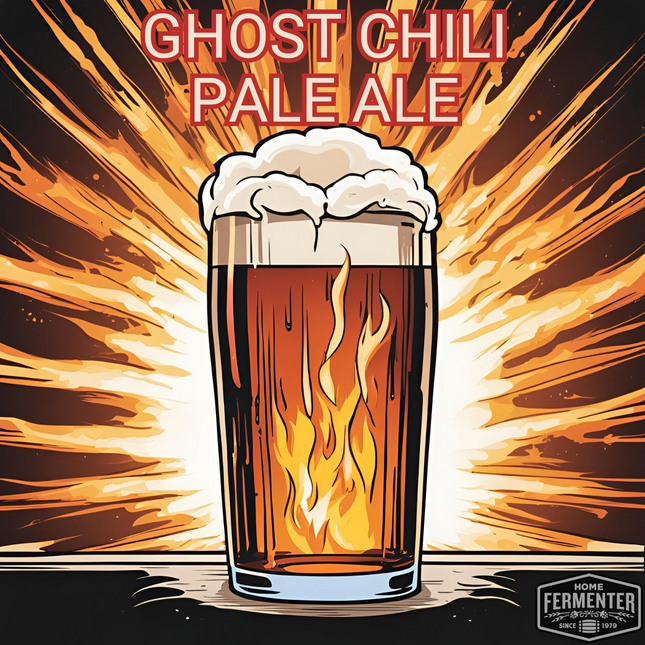 Spice up your beer game with our Ghost Chili Pale Ale - Extract with Grains Kit. This American pale ale features smoked ghost chilies for a fiery back burn. Columbus and cascade hops add a perfect balance of bitterness, flavor, and citrusy/floral aroma. Get ready for a ghostly good time (pun intended)! Each kit includes high-quality malt extract, specialty grains, and hops, carefully selected to bring out the distinct characteristics of an American pale ale. Two smoked dried ghost chilies are included to provide some finishing heat without being overbearing. With step-by-step instructions included, you'll be guided through the brewing process, ensuring a smooth and successful batch every time. Our recipe kits include steeping muslin socks for grain and hop additions. Yeast and priming sugar are not included in the kit and are optional add-on items. Makes 5 Gallons.  Estimated Beer Stats LME Option DME Option Original Gravity (OG) 1.055 1.054 Final Gravity (FG) 1.010 1.010 Approximate ABV 5.8% 5.7% Color (SRM) 8 7 Bitterness (IBUs) 40 41 Ingredient / Instruction Sheet
