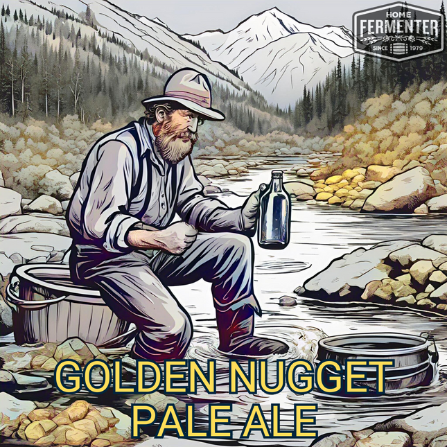 Get ready to strike gold with our Golden Nugget Pale Ale! This extract recipe kit is packed with vibrant nugget and East Kent golding hops, resulting in a refreshing and flavorful brew. A true treasure for any craft beer lover! Each kit includes high-quality malt extract, specialty grains, and hops, carefully selected to bring out the distinct characteristics of a pale ale. With step-by-step instructions included, you'll be guided through the brewing process, ensuring a smooth and successful batch every time. Our recipe kits include steeping muslin socks for grain and hop additions. Yeast and priming sugar are not included in the kit and are optional add-on items. Makes 5 gallons.  Estimated Beer Stats LME Option DME Option Original Gravity (OG) 1.055 1.052 Final Gravity (FG) 1.010 1.010 Approximate ABV 5.8% 5.5% Color (SRM) 8 7 Bitterness (IBUs) 42 43 Ingredient / Instruction Sheet