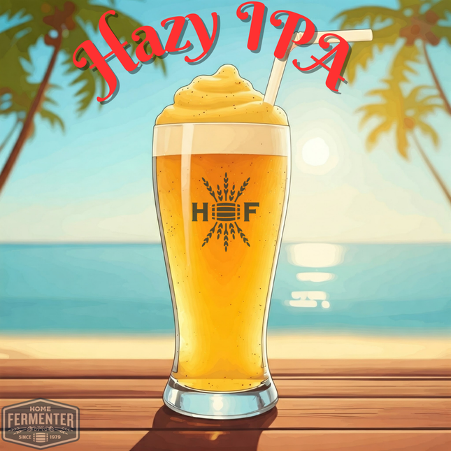 Indulge in the refreshingly smooth and fruit-forward Hazy IPA - Extract with Grains Kit. Its vibrant color and signature mouthfeel are achieved through a careful blend of New England style brewing techniques and a tantalizing combination of Citra Cryo Hops® and Mosaic Cryo Hops® as dry hops. Experience a truly delicious and aromatic brew that will leave you craving more. Each kit includes high-quality malt extract, specialty grains, and hops. With step-by-step instructions included, you'll be guided through the brewing process, ensuring a smooth and successful batch every time. Our recipe kits include steeping muslin socks for grain and boiling hop additions. Yeast and priming sugar are not included in the kit and are optional add-on items. Makes 5 Gallons.  Estimated Beer Stats LME Option DME Option Original Gravity (OG) 1.069 1.072 Final Gravity (FG) 1.017 1.018 Approximate ABV 6.8% 7.1% Color (SRM) 6 5 Bitterness (IBUs) 60 59   Ingredient / Instruction Sheet *YEAST SOLD SEPARATELY*  Recommended yeasts are: Wyeast 1318 London Ale III, Imperial Yeast A38 Juice, Omega OYL-011 British Ale V, Safale S-04, LalBrew New England Yeast, or Mangrove Jack's M66 Hophead Ale