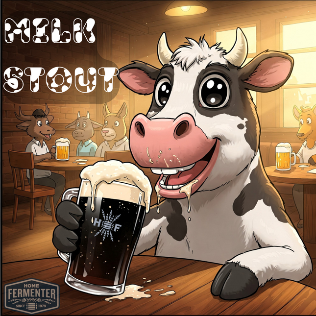 Experience the indulgent and creamy sweetness of our Milk Stout, enriched by the delicious notes of chocolate and roasted malt. The addition of East Kent Golding hops provides a subtle bitterness, creating a harmonious and easily drinkable beer with a smooth and velvety finish. Note: Contains lactose (milk sugar) Each kit includes high-quality malt extract, specialty grains, and hops. With step-by-step instructions included, you'll be guided through the brewing process, ensuring a smooth and successful batch every time. Our recipe kits include steeping muslin socks for grain and boiling hop additions. Yeast and priming sugar are not included in the kit and are optional add-on items.  Estimated Beer Stats LME Option DME Option Original Gravity (OG) 1.063 1.062 Final Gravity (FG) 1.022 1.022 Approximate ABV 5.4% 5.2% Color (SRM) 35 35 Bitterness (IBUs) 23 23 Ingredient / Instruction Sheet *YEAST SOLD SEPARATELY*  Makes 5 Gallons