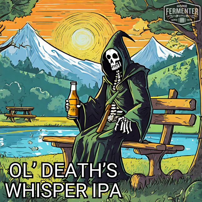 An old school American IPA and a Home Fermenter classic recipe. A great balance of malt character and lingering bitterness. Get ready for a taste of classic Americana with Ol' Death's Whisper IPA - Extract with Grains Kit. This easy-to-make recipe has been a local favorite for years! Each kit consists of high-quality malt extract, specialty grains, and hops, meticulously chosen to bring out the unique malt and hop flavors of an American IPA. Follow easy-to-follow steps included in the kit to guarantee a successful and seamless batch every time. Our recipe kits include steeping muslin socks for grain and boiling hop additions. Yeast and priming sugar are not included in the kit and are optional add-on items. Makes 5 Gallons.  Estimated Beer Stats LME Option DME Option Original Gravity (OG) 1.063 1.060 Final Gravity (FG) 1.012 1.011 Approximate ABV 6.7% 6.4% Color (SRM) 8 7 Bitterness (IBUs) 51 48 Ingredient / Instruction Sheet