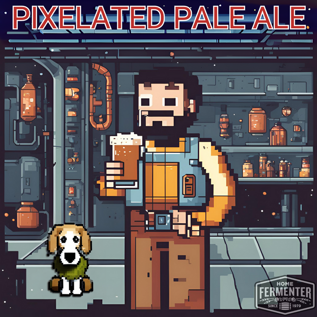 Take a bold leap into the world of brewing with our Pixelated Pale Ale - Extract with Grains Kit. This recipe kit combines Mosaic and Amarillo hops to create a hop-forward American pale ale that will challenge your taste buds and inspire you to take risks. Brew your own adventure with this kit! Each kit includes high-quality malt extract, specialty grains, and hops, carefully selected to bring out the distinct characteristic of an American Pale Ale. With step-by-step instructions included, you'll be guided through the brewing process, ensuring a smooth and successful batch every time. Our recipe kits include steeping muslin socks for grain and hop additions. Yeast and priming sugar are not included in the kit and are optional add-on items. Makes 5 Gallons.  Estimated Beer Stats LME Option DME Option Original Gravity (OG) 1.046 1.052 Final Gravity (FG) 1.009 1.010 Approximate ABV 4.9% 5.5% Color (SRM) 5 5 Bitterness (IBUs) 32 30 Ingredient / Instruction Sheet