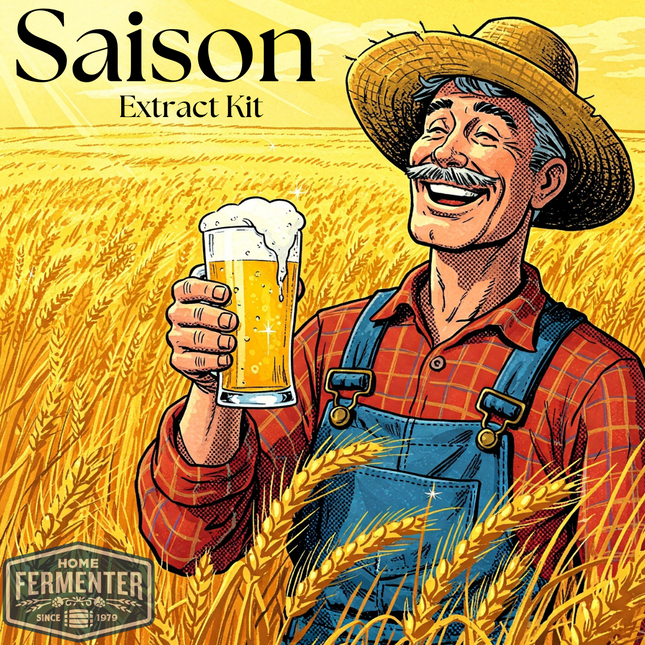 This farmhouse-style beer boasts a yeast-forward flavor profile, with a light color and perfectly balanced hop bitterness. The yeast you choose creates a distinct ester spice flavor and contributes to a dry finish. Each kit includes high-quality malt extract, specialty grains, and hops. With step-by-step instructions included, you'll be guided through the brewing process, ensuring a smooth and successful batch every time. Our recipe kits include steeping muslin socks for grain and boiling hop additions. Yeast and priming sugar are not included in the kit and are optional add-on items.  Estimated Beer Stats LME Option DME Option Original Gravity (OG) 1.055 1.054 Final Gravity (FG) 1.007 1.006 Approximate ABV 6.3% 6.1% Color (SRM) 5 5 Bitterness (IBUs) 23 24 Ingredient / Instruction Sheet *YEAST SOLD SEPARATELY*  Recommended yeasts are: Wyeast 3711 French Saison, Imperial B64 Napoleon, Omega OYL-026 French Saison, Safale BE-134, Lallemand Farmhouse, or Mangrove Jack's M29 French Saison Makes 5 Gallons