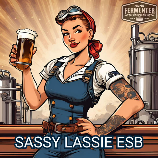 Sassy Lassie ESB is a British style ESB that has a medium bitterness with supporting malt flavors. Lovely notes of floral and fruit aromas complement this beer. It's like a trip to Great Britain, without the long flight or the strange accents.  Get ready to enjoy a deliciously unique English Special Bitter with our Sassy Lassie ESB - Extract with Grains Kit! Includes malt extract, specialty grains, and hops are carefully selected to bring out the best flavors. With easy-to-follow instructions, brewing a seamless and successful batch has never been easier. Cheers to tasty beer! Our recipe kits include steeping muslin socks for grain and hop additions. Yeast and priming sugar are not included in the kit and are optional add-on items. Makes 5 Gallons.  Estimated Beer Stats LME Option DME Option Original Gravity (OG) 1.055 1.054 Final Gravity (FG) 1.014 1.013 Approximate ABV 5.4% 5.2% Color (SRM) 13 12 Bitterness (IBUs) 31 32 Ingredient / Instruction Sheet