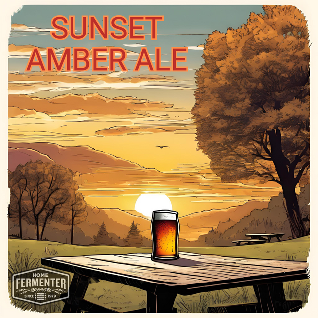 Our Sunset American Amber Ale extract recipe kit - a classic brew that strikes the perfect balance between malty sweetness and hoppy bitterness. Crafted for both novice homebrewers and seasoned enthusiasts, this kit contains all the premium ingredients you need to create a rich and flavorful amber ale right in the comfort of your own home. Each kit includes high-quality malt extract, specialty grains, and hops, carefully selected to bring out the distinct caramel and toasty notes characteristic of an American Amber Ale. With step-by-step instructions included, you'll be guided through the brewing process, ensuring a smooth and successful batch every time. Whether you're looking to impress your friends at a backyard BBQ or simply enjoy a refreshing pint after a long day, this American Amber Ale kit promises a satisfying brewing experience and a delicious end product. Elevate your homebrewing game with this timeless classic that embodies the spirit of craft beer innovation. Unlock the flavors of an American Amber Ale and brew the perfect pint with our extract recipe kit. Our recipe kits include steeping muslin socks for grain and hop additions. Yeast and priming sugar are not included in the kit and are optional add-on items. Makes 5 Gallons.  Estimated Beer Stats LME Option DME Option Original Gravity (OG) 1.054 1.055 Final Gravity (FG) 1.014 1.013 Approximate ABV 5.4% 5.2% Color (SRM) 14 13 Bitterness (IBUs) 34 33 Ingredient / Instruction Sheet