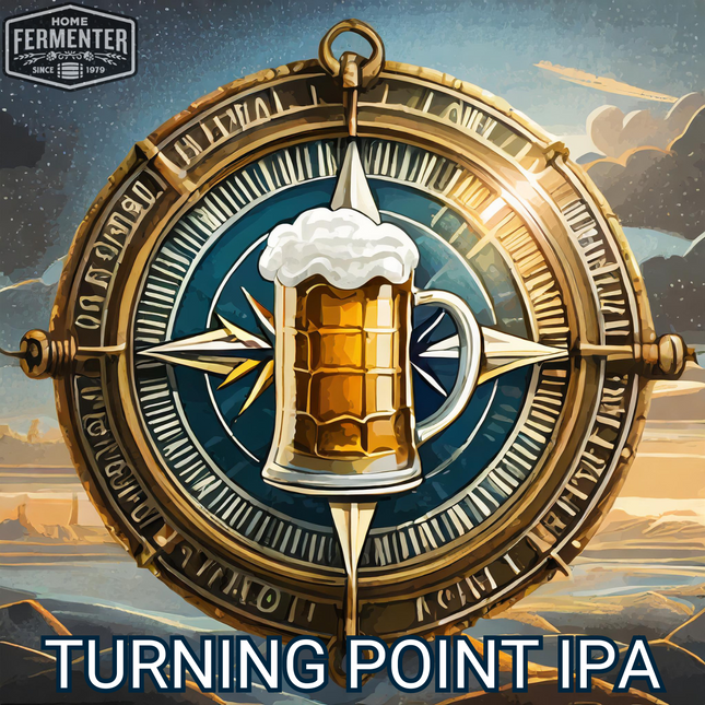 Introducing Turning Point IPA - a kit so hop-tastic, you'll reach a watershed moment with every sip. Brew up a storm with your own West coast IPA, featuring a blend of Nugget, Crystal, and Centennial hops, finished off with a burst of Amarillo® Cryo hops for maximum hop aroma. Cheers to a turning point in homebrewing! Each kit includes high-quality malt extract, specialty grains, and hops, carefully selected to bring out the distinct characteristic of a West Coast IPA. With step-by-step instructions included, you'll be guided through the brewing process, ensuring a smooth and successful batch every time. Our recipe kits include steeping muslin socks for grain and hop additions. Yeast and priming sugar are not included in the kit and are optional add-on items. Makes 5 Gallons.  Estimated Beer Stats LME Option DME Option Original Gravity (OG) 1.069 1.069 Final Gravity (FG) 1.013 1.013 Approximate ABV 7.4% 7.4% Color (SRM) 7 6 Bitterness (IBUs) 69 69 Ingredient / Instruction Sheet AMARILLO® is a trademark owned by Virgil Gamache Farms, Inc.