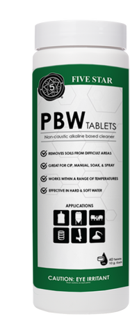 PBW is an alkaline, non-caustic, environmentally and user friendly cleaner.P.B.W. is a buffered alkaline detergent that has been proven to be more than an effective substitute for caustic soda cleaners. Because of its unique formulation of buffers and mild alkalis, it is safe on skin as well as soft metals such as stainless steel, aluminum, and on plastics. P.B.W. uses active oxygen to penetrate carbon or protein soils and is not effected by hard water. The oxygen also helps in reducing B.O.D. and C.O.D. in wastewater, which is an added environmental benefit.P.B.W. has been formulated as a C.I.P. cleaner and is very effective in removing protein soils found on brew kettles, fermenters, conditioning tanks, filters and all packaging areas. The concentrations to remove these soils are typically in the 1% range. However, due to soil and water conditions this concentration will vary. To help in hard water areas P.B.W. has been formulated with enough chelators to tolerate hard water over 17 grains.