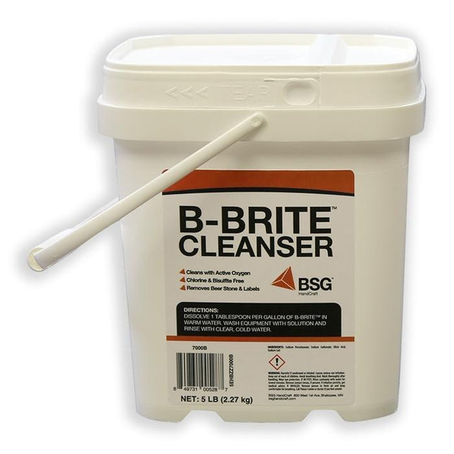 B-BRITE™ is an eco-friendly cleaner that uses sodium percarbonate and sodium carbonate to remove stains, beerstone and other fermentation residues. It contains no chlorine (contrast C-BRITE™) and no disulfites (contrast sodium metabisulfite and potassium metabisulfite). While it is not a sanitizer or disinfectant, B-BRITE™ has moderate antimicrobial properties that are beneficial in fermentation settings. It is safe to use on all materials. Recommended usage: Dissolve one tablespoon of B-BRITE™ per gallon of warm water (4 mL per L). Wash equipment with B-BRITE™ solution and then rinse with clear, cold water. For descaling of significant mineral buildup, a 20-30 minute soak in B-BRITE™ solution might be required. Rinse with clear, cold water after soaking.