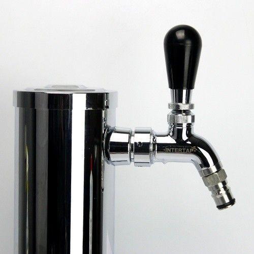 In normal rear-sealing faucets the entire faucet has to drain of beer. Intertap faucets are forward-sealing which keeps beer in it so the inside doesn't have a chance to get sticky, making cleaning much easier. It also reduces the chance of off flavors transfering to your beer while you pour.Other 'perl' forward sealing faucets use a floating o-ring, which is just as sanitary but requires the o-ring to move inside the faucet body in order to seal correctly. This can become a problem as the faucet ages. Intertap faucets use a sliding shuttle that guides the o-ring into the perfect position every time. The threaded spout easily unscrews from the faucet and can be replaced by a growler filler or stout spout quickly and easily. Pour a pint and then fill a growler in no time at all.304 Stainless Steel construction.