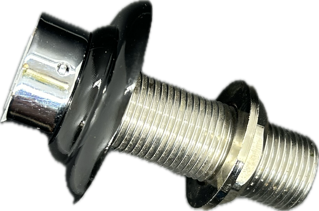 4" 304 stainless steel cooler wall coupling with 3/8" bore. Includes a two rubber washers and two lock nuts. Specifications: Material: Stainless Steel 304Finish: SS PolishedLength: 4"Bore ID: 3/8"Thread Size: 5/8"-14 BSP