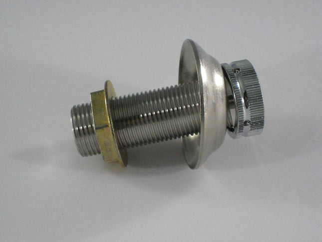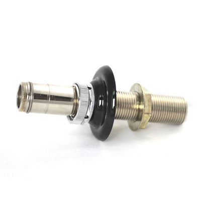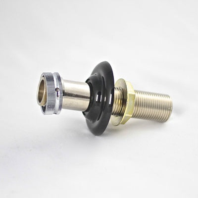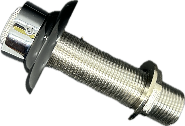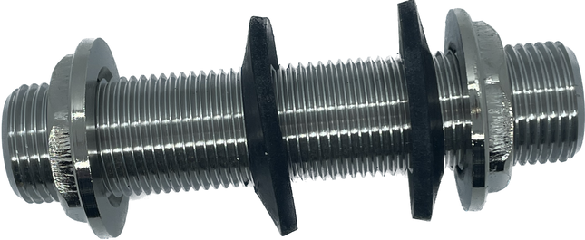4.5" jockey box wall coupling with 3/8" bore. Material: Brass Finish: Chrome plated brass Length: 4.5" Bore ID: 3/8" Thread Size: 5/8"- 14BSP Important information: Proposition 65 Warning: This product contains chemicals known to the State of California to cause cancer and/or birth defects or other reproductive harm.