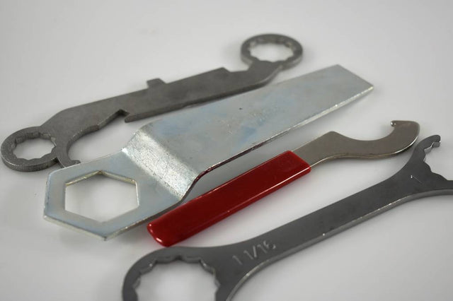 A faucet spanner wrench is a must have tool for all kegerator owners. This wrench with the red coated handle is gentler on the hands when using.