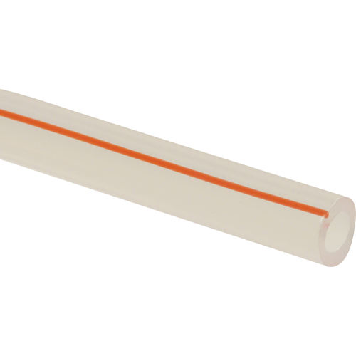 Ultra Barrier™ Gas tubing from EJ Beverage is constructed of a unique compound that provides for an excellent alternative to PVC. Advantages to this unique tubing are: Clear tubing with red stripe for identification as low pressure gas line PVC Free and BPA Free - containes no DEHP phthalates or other plasticizers Environmentally friendly production - does not emit dioxins Extremely low extractables/leachables High flexibility Remains flexible at lower temperatures Ultra-low permeability Superior Barrier properties Temperature range of -40 to 125° F Working pressure of 51 psi