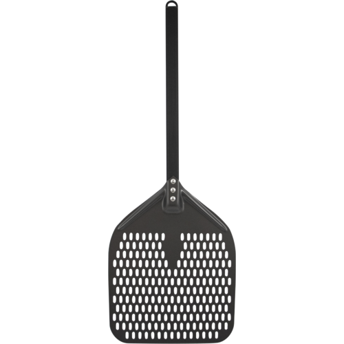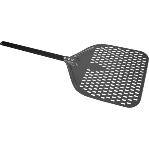 The main purpose of a perforated pizza peel is to get rid of excess flour from the pizza base. But why do you want to get rid of the flour? When you’re baking pizza on hot stone or steel, you don’t want flour on the baking surface because it burns. Fine wheat flours that are most commonly used for baking pizza burn at fairly low temperatures. It’s this flour that causes trouble. Dusting your pizza peel with semolina flour, which can handle higher heat better, can also help. Burnt wheat flour will make the oven smoky and will result in more cleaning work when you’re done baking. The burnt flour tends to stick and can be a real pain to get rid of. Especially on an unglazed pizza stone. And if you’re not able to clean the stone properly, the flour can keep smoking next time you use the stone. Less Contact Surface – Less StickingA perforated peel has a smaller surface that is in contact with the pizza dough. This means pizza is less likely to stick to a perforated pizza peel. The reason is that the larger the contact surface is, the more friction there will be between the peel and the pizza. And more friction means it is more likely to stick. A smaller contact surface also means that you’ll need less flour when you’re dusting the peel. As noted above, you want as little flour as possible in the hot oven. So in addition to removing more flour from the dough itself, the peel need less flour due to the holes. Perforated pizza peels are also lighter than solid pizza peels, due to less metal on the carrying surface. This will make it easier to use the peel. Less Condensation – Crispier Pizza CrustWhen you take a hot pizza out of the oven, you may have noticed that water sometimes is formed under the pizza. This moisture makes the pizza less crispy, or even soggy. Using a solid pizza peel may create condensation when the hot pizza meets the cold (room temperature) surface. This is mostly a problem with metal peels since hot air is trapped between the pizza crust and the smooth carrying surface. Condensation happens when this hot air is cooled down to a certain point (it’s dew point), and water drops are created. When you’re using a perforated pizza peel, on the other hand, you will experience less condensation. The reason is that the holes let the hot air escape through the peel. Size Options 12" Square x 31" Long 14" Square x 31" Long Lightweight aluminum construction. Note: Phillips Head screwdriver required for assembly.