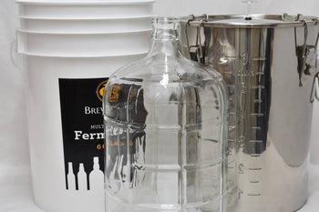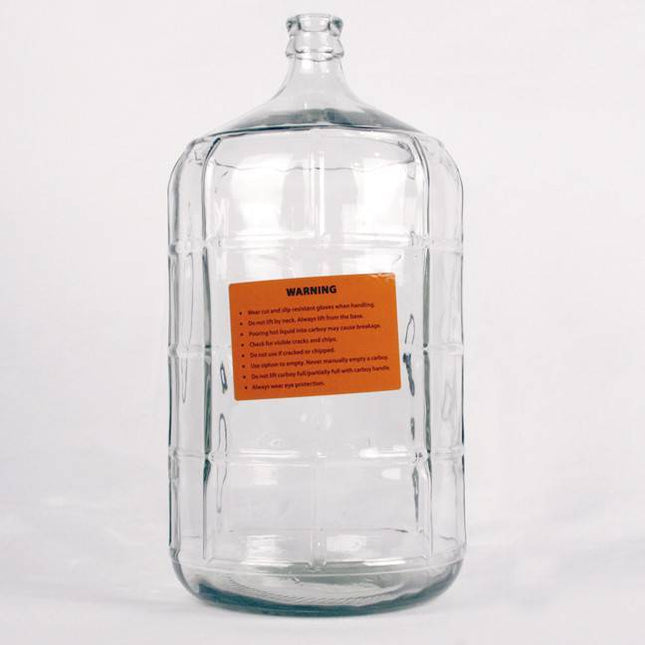 Glass carboys have been a staple of the brewing and winemaking world for generations, but traditional tight neck carboys aren't without their limitations. Standard glass carboys can be difficult to clean after fermentation and require a siphon or racking cane to transfer liquid out. The wide mouth carboy is extremely easy to clean—simply removing the lid allows you to get your hand or arm all the way inside to scrub away stubborn sediment. And with a convenient spigot at the bottom, you can transfer liquid out of the vessel with ease. Features: Lid with gasket for tight seal Included carrying harness Ported lid ready for #5 stopper & airlock (stopper and airlock not included) Plastic spigot with 3/8" barb Please note: The carrying harness should not be used to move the vessel when full. DO NOT PUT HOT LIQUIDS INTO THIS GLASS JAR This item is excluded from free shipping offers