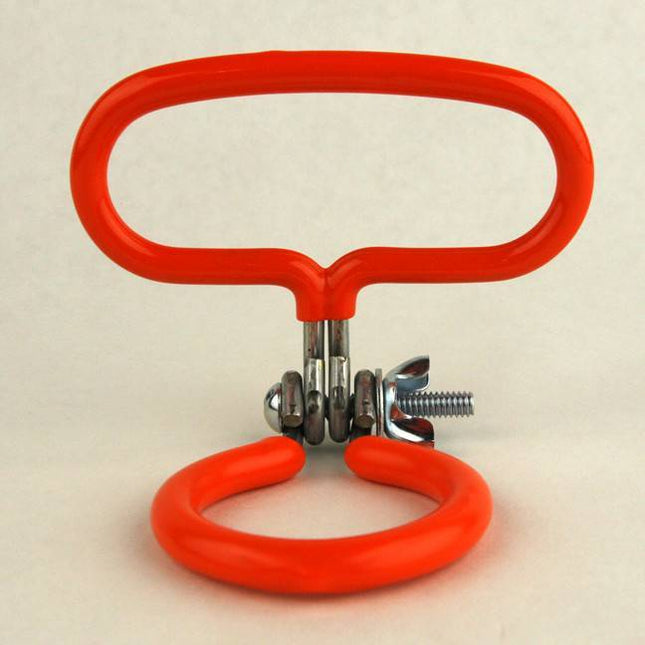 The Metal Carboy Handles, will allow you to get-a-grip when washing and sanitizing your glass carboys. As it is rubberized, vinyl coating makes it easy for wet hands to hold. Very handy when dealing with soapy glass or keeping carboys steady when moving them. It fits securely underneath the lip of the carboy and tightens down with the simple turning of a wing-nut. The Orange Carboy Handle will work with either 3, 5 and 6 gallon Glass carboys. Not meant for carrying full carboys. Instructions: Remove or loosen the wingnut and then place clamp over the top of carboy neck and press down until it sits on the inner ring of the neck. Reassemble clamp unit and handle through the screw and the washer and tighten the wingnuts. Tighten the wingnut until feels tight enough (Do Not Overtighten). Warning: Carboy handles are only meant to carry empty carboys. If you must move a full carboy with a Carboy Handle, support the underneath with your hand.