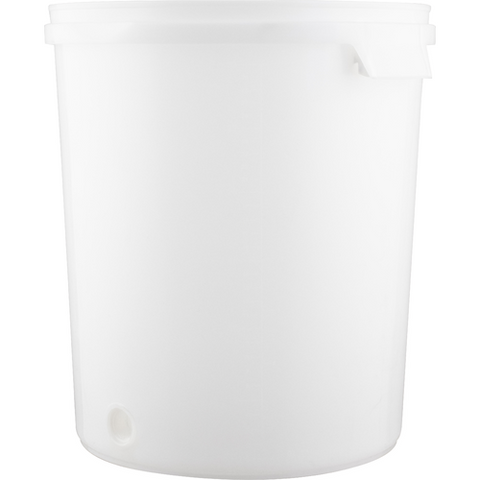 A 7.9 gal (30 L) food-grade plastic bucket. Ideal for all fermentations, but especially ideal for wine kits, beers that tend to have a high krausen (hefe) and any fermentation that is slightly too large for your 6 gallon pail. The smooth walls are easier to clean compared with other blow molded fermenters that have quite porous walls. Why Polypropylene? These buckets are made from polypropylene as it is less porous and significantly smoother than other HDPE fermenters. HDPE is porous and can harbor microbial activity making it more difficult to clean and sanitize. Being less porous, polypropylene also does not absorb aroma like HDPE so there is less flavor carry over from batch to batch. Note: These buckets come molded with a threaded hole for a spigot to screw into. We recommend the Italian bottling spigot. Please note: the spigot hole comes pre-molded into the bucket and needs to be drilled out before installing the spigot. It is recommend using a 5/8" drill bit, taking care not to strip the female threads that accept the spigot. The spigot includes a back nut that won't be needed—simply remove the back nut and thread in the spigot with the gasket in between the neck of the spigot and the bucket. The lid forms a very tight seal and requires a decent amount of downward force to lock in place. Lid sold separately.