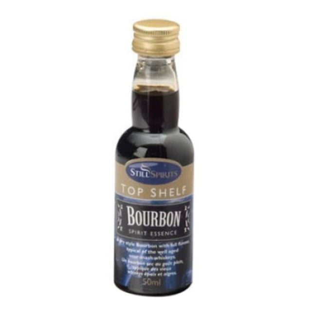 Top Shelf Spirits has been developed as a range of flavorings for your homemade distilled spirit, inspired by spirits all over the world. Top Shelf's Bourbon makes a dry, well aged, sour mash profile. Just add this to a neutral spirit or vodka for a taste experience inspired by a top shelf spirit. Size: Each bottle contains 50 ml (1.7 US fl oz). Packed in New Zealand. Mixing Instructions: Shake well and add contents to 2.25 L (76 US fl oz) of 40% ABV neutral spirit or vodka. Makes three 750 ml (25 US fl oz) bottles. Ingredients: Stabilizer (E422), humectant (E1520), natural flavoring, water, color (E150a).