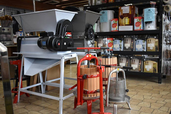 Bladder presses are a simple and highly effective way of extracting juice from apples, grapes or other pitless fruit to make cider or wine. Pairs perfectly with the Electric Apple Grinder. Speidel was the original manufacturer of the bladder press. While similar to the Italian models in operation, Speidel offers a few quality upgrades. To obtain a better press Speidel uses a slotted screen, similar to what is offered on large commercial presses, instead of a screen with circular perforations. Speidel presses also offer superior hardware and a recessed valve assembly (to reduce accidental breakage). Insert bag and outer splash guard included. Compared to other presses, the Speidel hydro press has a higher juice yield (~65-70%) and works completely without electricity and with minimal effort. This press can be used with any domestic water supply the provides at least 2.5 bar (36 psi) of pressure. Pressing pressure and pressing time is simply regulated by the water flow. These units are extremely easy to care for and can be cleaned quickly by simply spraying it down with a hose after use. You will find the quality you'd expect from a product that is 100% German-made. Overall height is 35" and basket height is 18.5". A press cycle averages around 40 minutes. Includes: Complete press assembly Inner mesh bag (to keep fruit from getting in the stainless basket and make cleanup easier) Plastic "spray-protection bag" to keep juice from squirting out Fittings to connect garden hose Instruction manual Presses ship in a corrugated box. Minor assembly (attaching legs) is required before use 1 Year Warranty on all parts! FAQ: Can the press be operated with air pressure? No. These are hydraulic presses that may only be operated with water. When operating with compressed air, there is a risk of explosion and a very high risk of injury if the membrane bursts due to excess pressure or damage. Is a minimum water pressure required? In order to ensure the function and the best possible yield, there should be a minimum water pressure of 2-2.5 bar on the press. What if the water supply delivers more than 3 bar? In principle, this is not a problem, as if the water pressure inside the press exceeds 3 bar, the pressure relief valve opens and there is no pressure-related damage. How many apples make how much juice? On average, 50kg (110 lbs) of apples produce around 30-35L (8-9 gal) of juice, depending on the variety and quality of the apples. California Recipients: WARNING: Cancer and Reproductive Harm - www.P65Warnings.ca.gov Due to size and weight, this item is excluded from any flat rate / free shipping offers. Limited stock available in-store. Please allow additional time for processing.