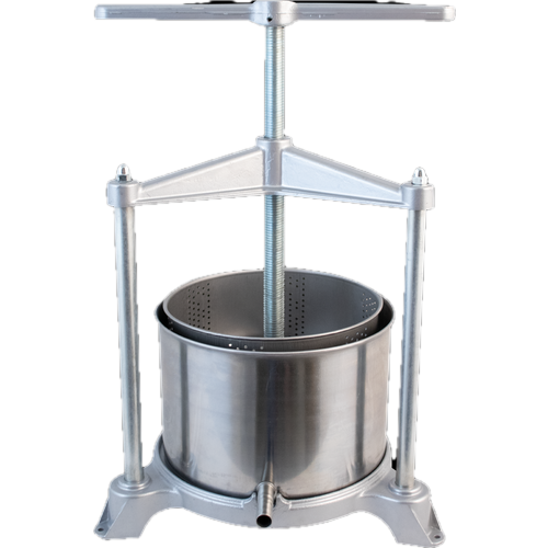 This small press is a great option for pressing smaller quantities of fruit, herbal tinctures, and cheese. The basket is made from stainless steel and is perforated to keep the product in. The stainless steel outer basin will collect your liquid and with the pour spout, direct the liquid to your collection container. The pressing plate and base are made from aluminum. The press basket diameter is 20cm (7.8") wide by 17cm (6.7") tall.