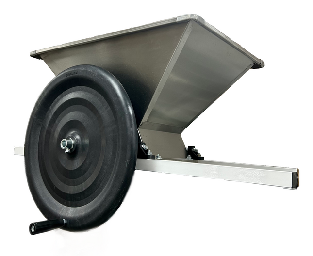 Does not ship, for In-Store Pickup only. Special Order: Please allow approximately 1 week for processing. A standard manual crusher destemmer with a stainless steel receiving bin/hopper. This unit features removable easy-to-clean stainless grates where the grapes fall through after having been crushed. This unit can be purchased by itself or alongside the stainless steel stand and chute. Imported from Italy from Enoitalia. Features: Stainless steel receiving bin Enamel coated body, agitator, and fly wheel Stainless Steel Grate that slides out for easy cleaning Nylon Rollers Replacement parts are available Product Dimensions 48"L x 27"H x 20"W