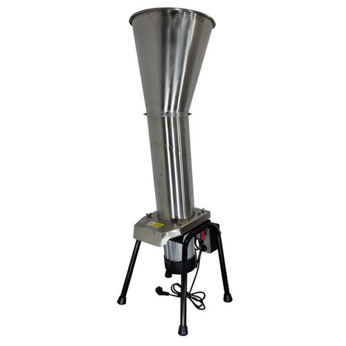 This all-stainless electric apple grinder (aka apple/crusher/grinder/pulper/pulverizer/masher) makes the correct pulp size of your apples for the 40L Hydropress. Allowing maximum yield potential of delicious juice. It can also be used on destemmed grapes, pears and other non-pitted fruit. With an updated baffle design in the feed chute, it will take whole apples, large or small, poured rapidly down the chute. Always remember to wash down immediately after use with the power unplugged. Please be extra careful with the razor-sharp blades when wiping down. Store dry. Sturdy & Corrosion-FreeAll structural and contact parts are made from industrial grade AISI 304 stainless steel for long life and quick, easy cleanup. All construction is heavy-duty and rugged. Powerful MotorThis crusher boasts a hefty 2hp (2780 rpm) motor that provides unlabored operation and years of reliable use. It grinds 2 lbs of Apples in just 2 seconds. Safety FirstA lockout switch in the base of the unit requires the hopper/blade cover to be in place, or power will not be supplied to the motor. Baffles in the chute prevent hand contact with blades. Features: Super fast grinding High juice yield Strong 2 HP motor Safety switch included Heavy-duty construction Stainless materials Wide stable stance For apples, pears, pitless fruit Fast & easy cleanup 110V CE Certified Due to size and weight, this item is excluded from any flat rate / free shipping offers.