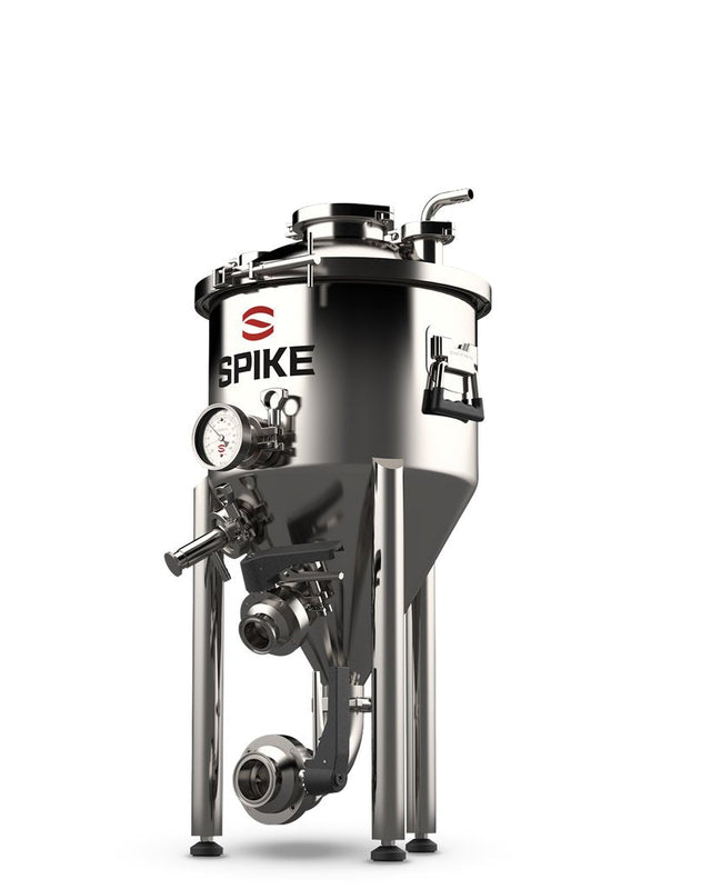 CF10 SPIKE CONICAL UNITANK Spike Brewing has completely re-designed their stainless conical line from the ground up. It took a year in the making and are confident that these are the best conical fermenters on the market! Along with the new TC100 Temp Control System, you'll have everything you need to Elevate Your Brew Day! CF10 Features: 304 stainless steel; 1.2mm (18ga) All sanitary welded ports (no-weldless fittings) All hardware shown here is included! Designed for 5 to 10 gallon batches 14 gallon total capacity 15 psi working pressure (always use a 15 psi pressure relief valve) Use for pressure transfers Use as a brite tank Etched volume markings 17" wide by 35¨ tall Fully polished finish Lid Features: 4" TC modular top port Allows for hop additions, temp control coil, top sight glass, etc Three 1.5" TC ports which allow for: Blow Off Port – Dedicated port for an airlock or blow off tube Hop Port – Dedicated port for adding hops PRV Port – Dedicated port for your pressure relief valve (PRV) Stainless band clamp for attaching the lid Completely removable lid for easy cleaning Body Features: Huge 2" TC bottom dump with butterfly valves (no more stuck yeast dumps) 1.5" TC racking port with butterfly valve 1.5" TC sample valve (for taking gravity readings) 1.5" TC thermowell with 3" dial thermometer Limited availability in store. Drop ships from vendor.