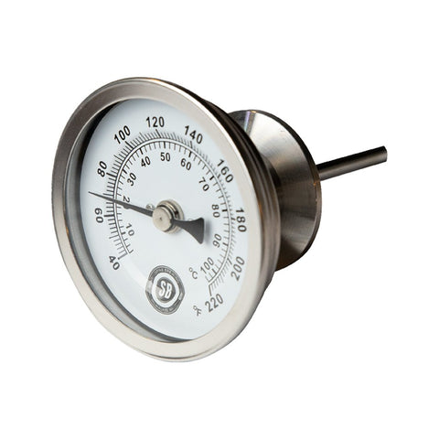 This Spike Brewing 1/2” NPT Brew Thermometer is ready to screw directly into the kettle. This 2.5” stemmed thermometer can cover 40-220 degree ranges. The 3” glass dial will display all the information you need at a glance and while withstanding the high heat from the burner below. The thermometer also has calibration screw for added accuracy.