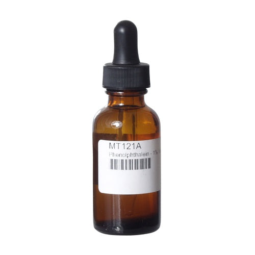 Replacement phenolphthalein indicator for Acid Test Kits. This phenolphthalein is suitable for acid test kits from other suppliers as well. Phenolphthalein will often turn colorless in acidic solutions and red in basic solutions. 1 ounce bottle Ships via ground transportation only.