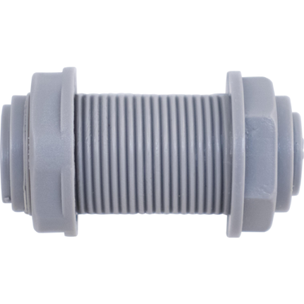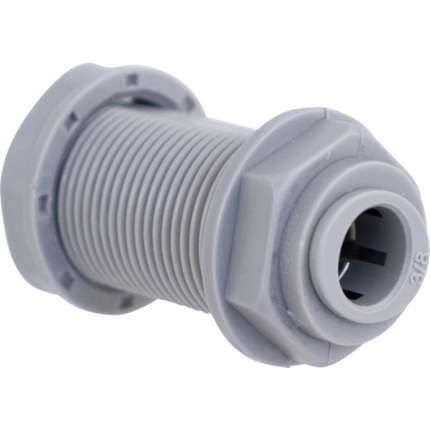 This Duotight fitting is designed to go through the wall of a tank, housing, or wall, similar to a pass through shank, so you can run EVABarrier tubing from one side to the other. Compatible with EVABarrier 9.5 mm OD tubing.