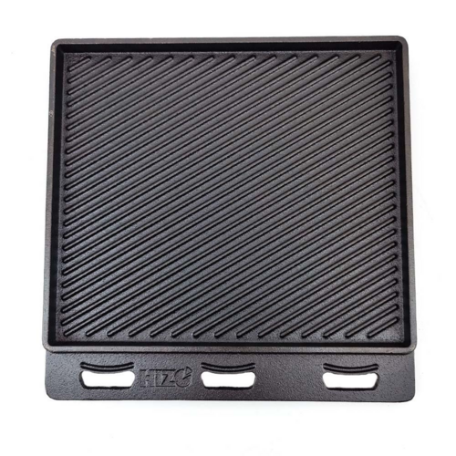 Perfect to use with the HIZO G14 Pizza Oven or your backyard gas grill. The double-sided griddle and flat skillet plate is the heavy-duty heat-retention cooking utensil you need in your arsenal. Weighing in at a whopping 9 lbs, this thick cast iron plate can really hold the heat! The HIZO double-sided skillet has a flat, smooth griddle side, and raised grill grooves for the other side. Both sides have a raised lip to handle some juices and oil to fry in. It can be moved around easily by the two removable handles in three location points on the plate.