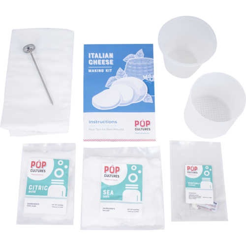The Pop Cultures Mexican Cheese Kit has everything you need to make fresh and delicious mexican cheese at home! All the instructions and equipment you need to make multiple batches of Queso Fresco and Queso Oaxaca.