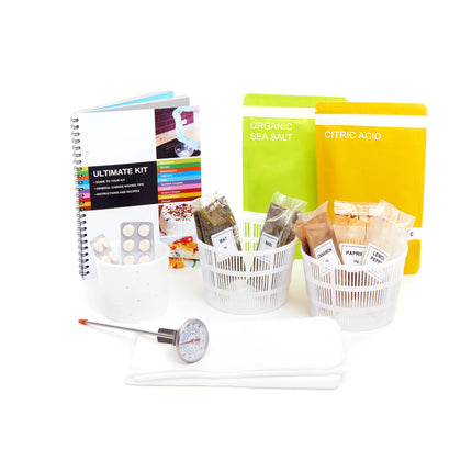 This new and improved Ultimate Cheese Making Kit contains all the ingredients for cheese making with the addition of herbs and spices to help create your own flavors. Also included are three-cheese moulds that shape cheeses into wonderful centerpieces. All you need to add is milk, cream, or yogurt depending on the cheese you are making.